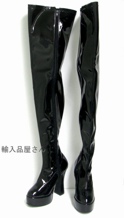 【即納】Ellie Shoesストレッチ素材/厚底オーバーニーロングブーツエナメルの黒/(品番Thrill-BLKPAT)